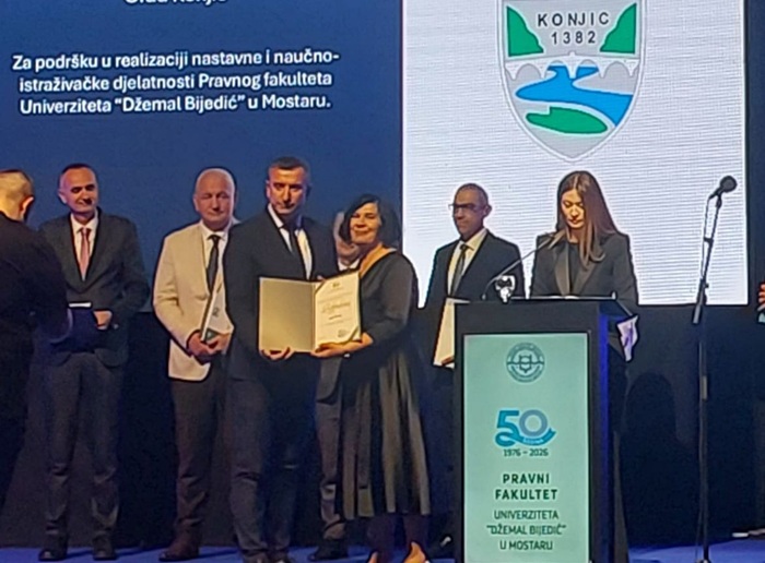 Gradonačelnik Konjica Osman Ćatić prisustvovao svečanoj akademiji kojom je obilježeno 50 godina uspješnog rada Pravnog fakulteta Univerziteta “Džemal Bijedić” u Mostaru na kojoj je Gradu Konjicu uručena zahvalnica za podršku u realizaciji nastavne i naučno-istraživačke djelatnosti Fakulteta